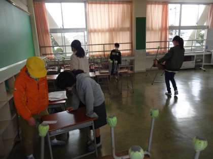 1・2・3・4年生が下校してから、5年生は、机・椅子の移動を行いました。来年度の各教室の人数に応じて作業をしました。