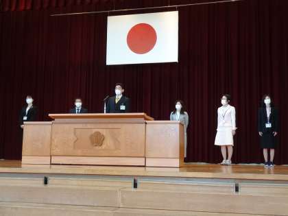 8時50分から着任式を行いました。年度末人事異動により、転入された教職員を紹介しました。本日勤務されなかった転入教職員は、随時校内放送を使って紹介する予定です。