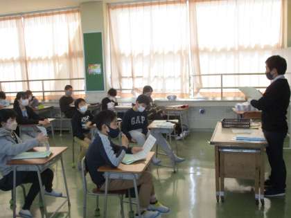 学級開きで台風ゲームを行いました。担任の先生から出題される問題をグループで相談しながら正解を導き出します。担任の先生の好きなことや家での過ごし方を予想して、盛り上がりました。