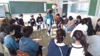 学級開きで台風ゲームを行いました。担任の先生から出題される問題をグループで相談しながら正解を導き出します。担任の先生の好きなことや家での過ごし方を予想して、盛り上がりました。