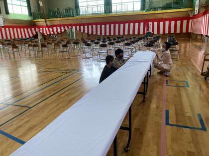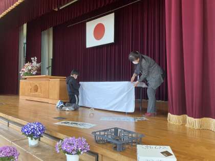 登校してから早速、最高学年としての仕事をしました。朝は着任式と始業式の準備。下校前には、入学式の準備をしました。学校のために、協力しながら進めることができました。