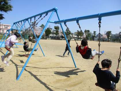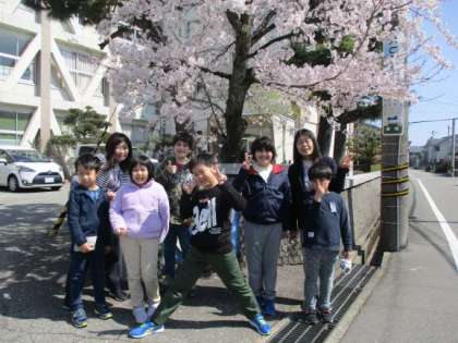 今日は満開の桜の木の下で記念撮影。サイコロすごろくや外遊びなどで交流しました。