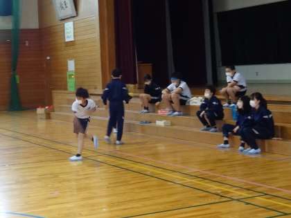 投力向上を目指して、ボール投げの練習をしました。日頃の運動では、なかなか高めることのできない力です。