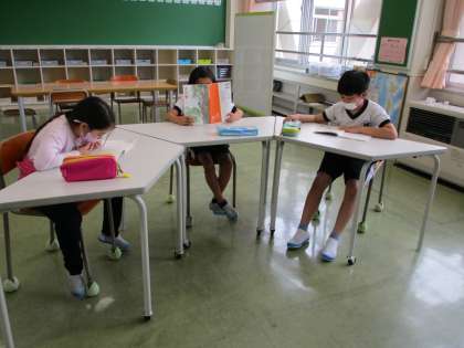 国語の教科書から「どきん」の詩を音読練習しています。「つるつる」「ぐらぐら」などの言葉のおもしろさを感じ取りながら練習しています。