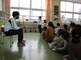 「1年生」や「春」に関係のある絵本の読み聞かせをしました。感じたことやその理由を発表するときは、「はいっ。」と返事をすることや、正しい話し方や聞き方について学びました。