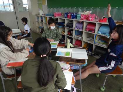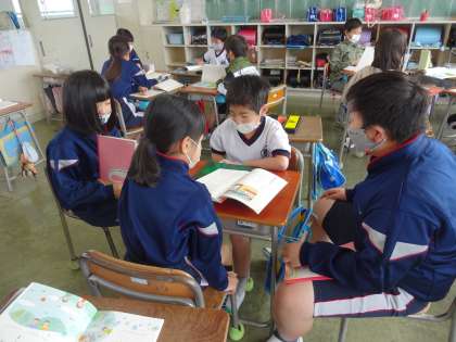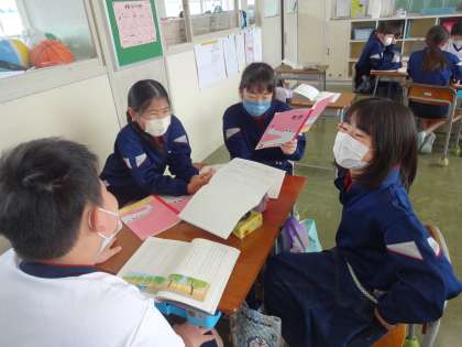 今日は、グループになって、意見を交流しました。自分とは違う考えを知ることができ、楽しく発表できました。その後は、学級全体の前で発表し、考えを広めました。