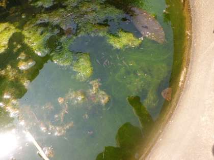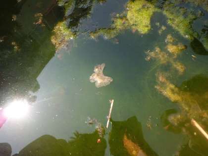 池にメダカが集まっているのを見て、「あ、メダカの学校だ!」