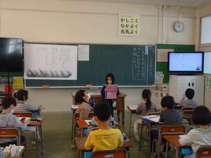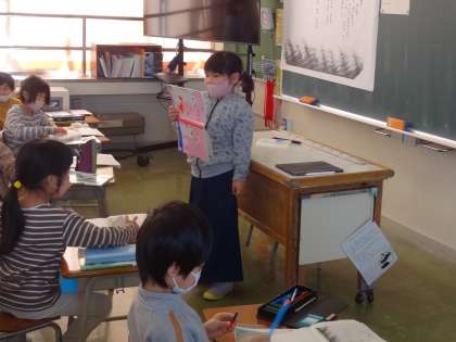 数名の音読を聞いた後、「続きは、明日ね。」と先生。