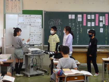 漢字の成り立ちについて、漢字を4つに分類しました。どのように分類したかを、班ごとに発表しました。
