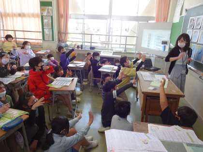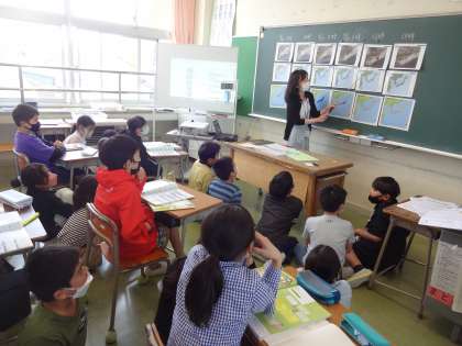 春の天気は、変わりやすいのが特徴です。人工衛星写真やアメダスの資料等を見ながら、雨雲は西から東へと移動することや、それに伴って天気が変化することを学びました。