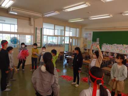6年生が考えた運動会の応援合戦の内容を、5年生が教わりました。