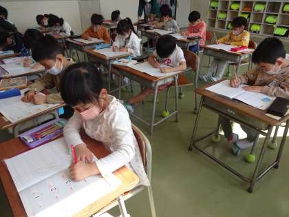 正しい書き順で書けるように空書きし、ワークシートで練習しました。