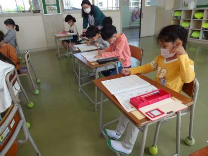 1、2、3、4、5の数字の意味や書き方を学習しました。