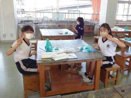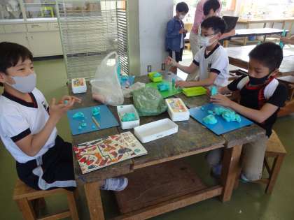 板にした粘土やひもにした粘土の形を生かして、立ち上げていきます。