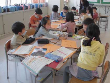 「はしの上で」の曲の中の、「○ー○○がとおる ○−○○もとおる」の○の部分にあてはめたい名前をグループで考えました。その後、音楽に合わせて自分たちが考えた名前で、楽しく歌いました。