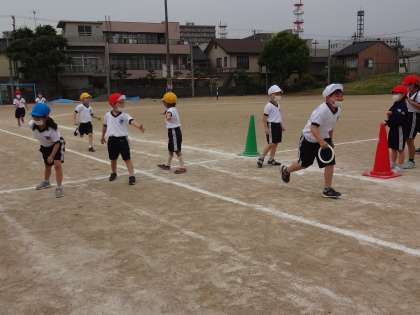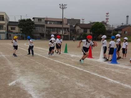 合同体育で、リレーをしました。今年度の運動会では、全員リレーをトラックで行います。