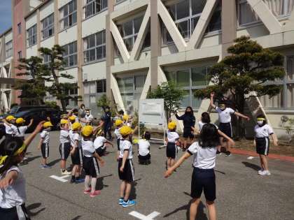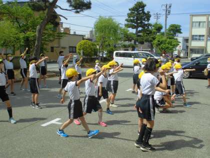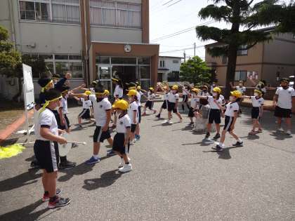各団ともに、5・6年生が中心となって、振付を教えていました。約1週間後に本番ということもあり、表情に真剣さが増してきています。