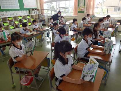はきはきと大きな声で読むことが学習課題です。みんなで声を合わせ、張り切って読みました。