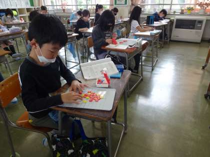 今日も、おはじきを使いながら、わり算の立式をしました。分ける計算に慣れてきました。