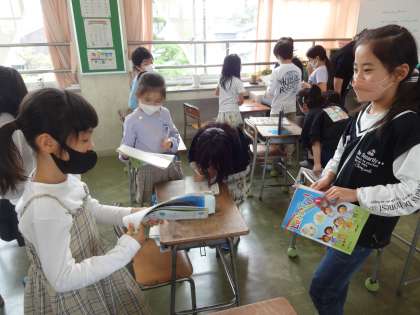 授業の終わりに校長先生が顔を出されると、数名の子供たちは近付いていき、校長先生とも英会話を楽しみました。