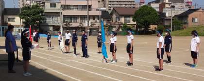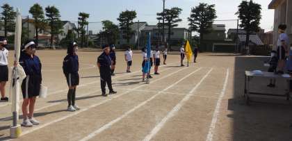 朝活動の時間を利用して、運動会の開・閉会式の動きを練習しました。