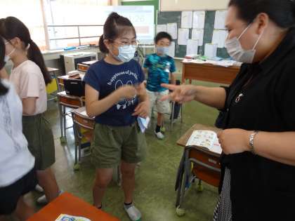 じゃんけんをして、天気(所属する天気グループ名)を英語で尋ね合いました。じゃんけんに負けた人は、勝った人の天気グループに入るゲームです。
