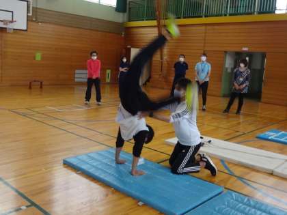 午後から、本校教員の体育実技研修会を行いました。