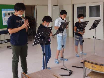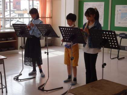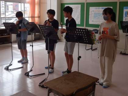 今回は、合奏ではなく「リレー奏」をしました。自分の出番になっても遅れることなく伴奏に合わせて演奏することに気を付けました。