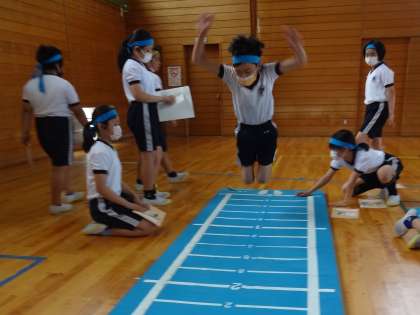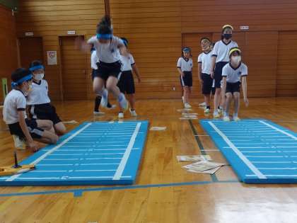 測定し、記録の伸びを喜びました。もっと記録を伸ばしたいと運動意欲を高めています。