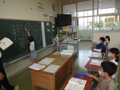 後半は、「まほう」「ほうき」「たいそう」など、「う」をそのまま読まないで伸ばして読む「伸ばす音」について学びました。文の中から、どの文字が「伸ばす音」なのか、発音しながら見付けました。