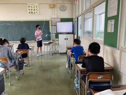 実物投影機を使って、クラス全員に「分数÷整数」の計算の仕組みを図で説明しました。3人で説明して、計算の仕組みを納得してもらうことができました。