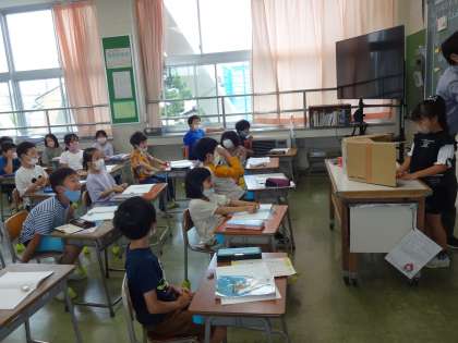 長さを表すには、1つの物を使って「○○で何個分」、さらには、世界共通の「cm」の単位を使うことを学んでいきます。