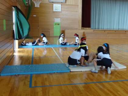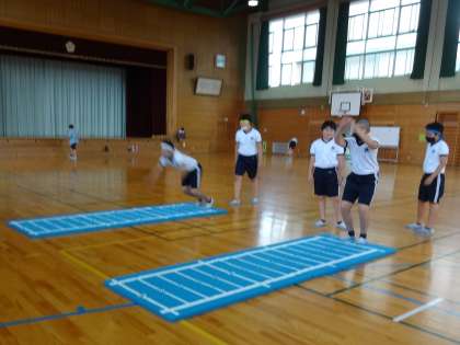 「立ち幅跳び」「上体起こし」「反復横跳び」の3つのコーナーに分かれ、自分の体力を高めるために練習をしました。