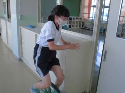 上:竹馬・一輪車クラブ 一輪車と竹馬に乗る練習に取り組んでいます。