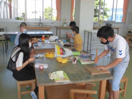 中:おもしろ工作クラブ 各自で何を作るか決めて、製作に励んでいます。