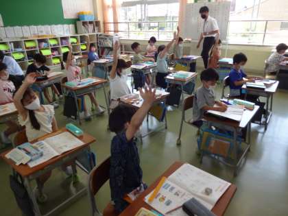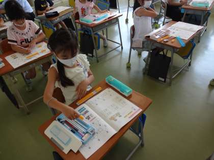 数ブロックも使いながら、「8はいくつといくつ?」の問題に、張り切って取り組んでいます。