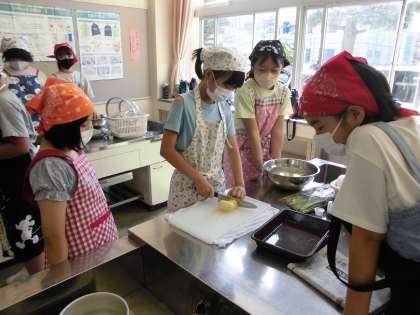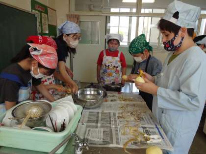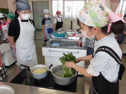 子供たちがとても楽しみにしていた調理実習。お湯から茹でて作る「ほうれん草のお浸し」と、水から茹でて作る「茹でじゃがいも」に挑戦しました。