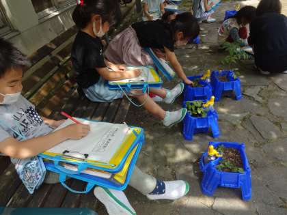 自分のアサガオを観察するのは当然ですが、ついつい友達のアサガオも気になります。
