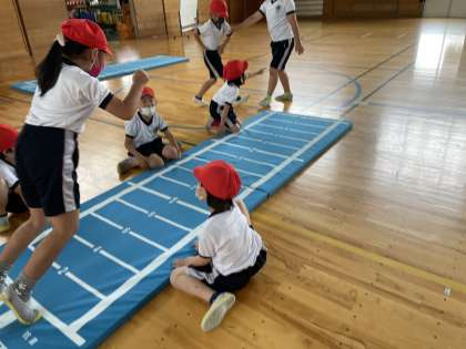 最初は、笑っていましたが、意識して体を動かすことで、空中での姿勢がとてもきれいになっていきました。よい記録が期待できそうです。