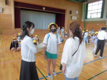その後、引き渡し訓練を行いました。保護者の方々のご協力のおかげで、スムーズに引き渡しができました。ありがとうございました。