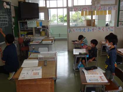 右から数えて、前から数えて、後ろから数えてと、位置を表す様々な言い方を考えて、発表しました。