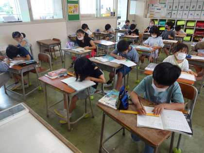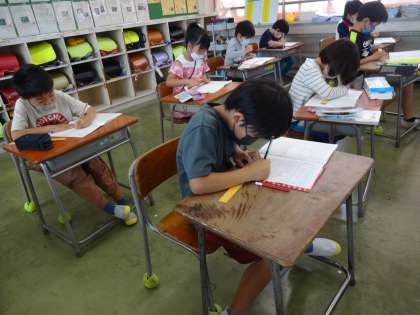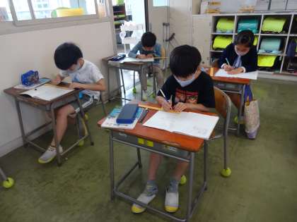 先生が出題した5cm、12cm、7cm5mmの3つの長さに挑戦です。ものさしに沿って正しい長さの直線が引けたでしょうか。