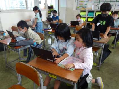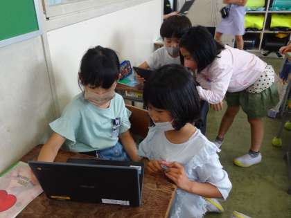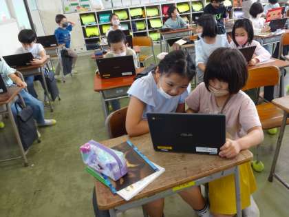 クロームブックで動画を撮影し、クラスルームにアップする練習をしました。