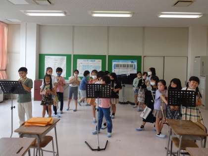 全員で一斉に吹いたり、パート別で順番に吹いたりしながら、指の動きとタンギングがうまく合うように練習しました。