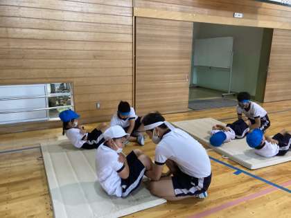 新体力テストの種目にある、上体起こしを1・6年生合同で行いました。目標記録を決めて、規定どおりの30秒間の1回で測定しました。