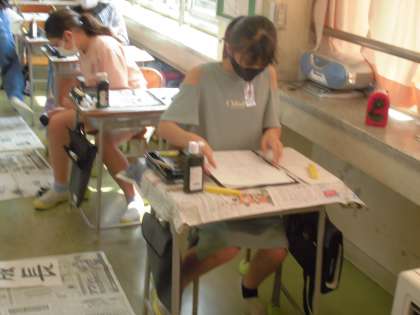 「先に書いた画が出る」ことを学習課題として、縦画と横画のどちらから書くのが正しい書き順なのか確認してから「成長」を書きました。書いてみると意外に難しい字です。来週もう一度書きます。