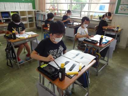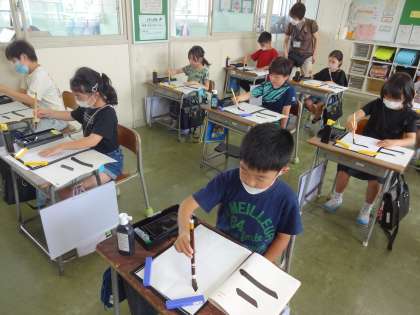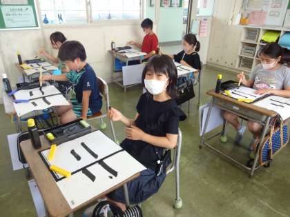 始筆から終筆まで、ふでの穂先の方向を変えずに、「トン、スー、トン」と筆を運びます。