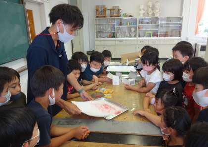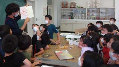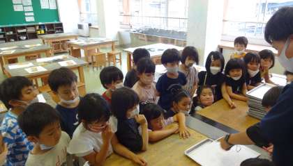 夏をパステルカラーで表現する絵の製作です。先生が製作の仕方を進めれば進めるほど、子供たちの心は奪われていきます。