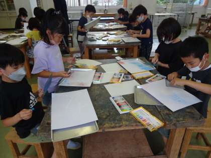 楽しくそして意欲的に取り組みました。友達の作品を褒めたり、自分の作品の出来映えに満足したりしました。