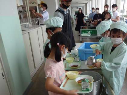 1年生の保護者を対象に、PTA主催の「学校給食参観」を行いました。